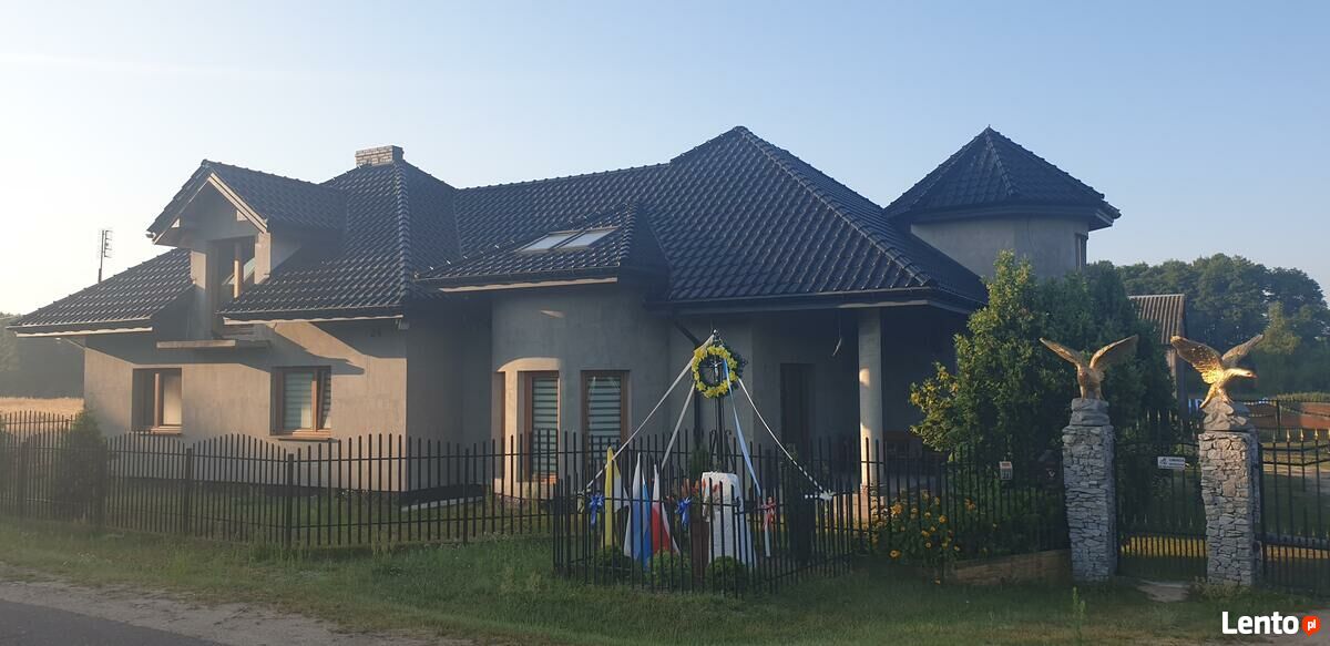 Dom o powierzchni 400m2 wybudowany na działce o wielkości 12000 m2 plus dodatkowe działki sąsiadujące łącznie 4,1 ha.Cała posesja ogrodzona na działce wybudowana jest altana pod trzciną,piwnica,budynek gospodarczy około 170 m2.